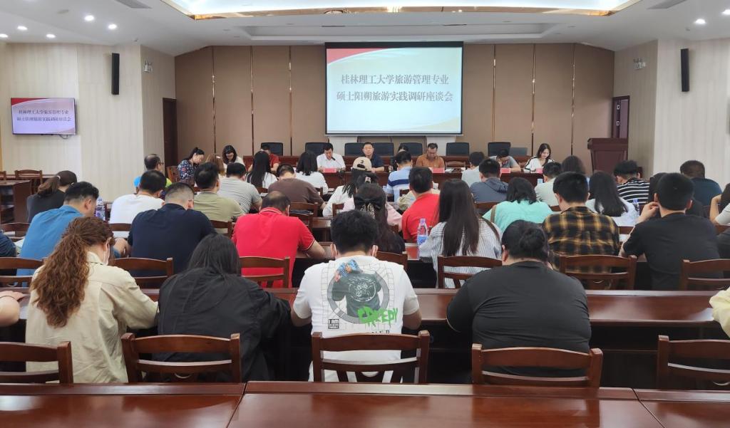 5月18日,桂林理工大学古天乐代言太阳集团网址2021级MTA全体同学在MTA教育中心主任梁振然副教授和学院国际交流中心主任侯玉霞副教授的带领下,前往阳朔县参加桂林理工大学旅游管理专业硕士阳朔旅游实践调研座谈会。座谈会得到了阳朔县委副书记秦太平及各部门相关领导的高度重视和大力支持。座谈会由阳朔县文化广电体育和旅游局副局长黄秀琴主持,阳朔县委副书记秦太平以及县委党校、县世旅办、县民宿协会和主要景区相关领导和负责人出席了座谈会。