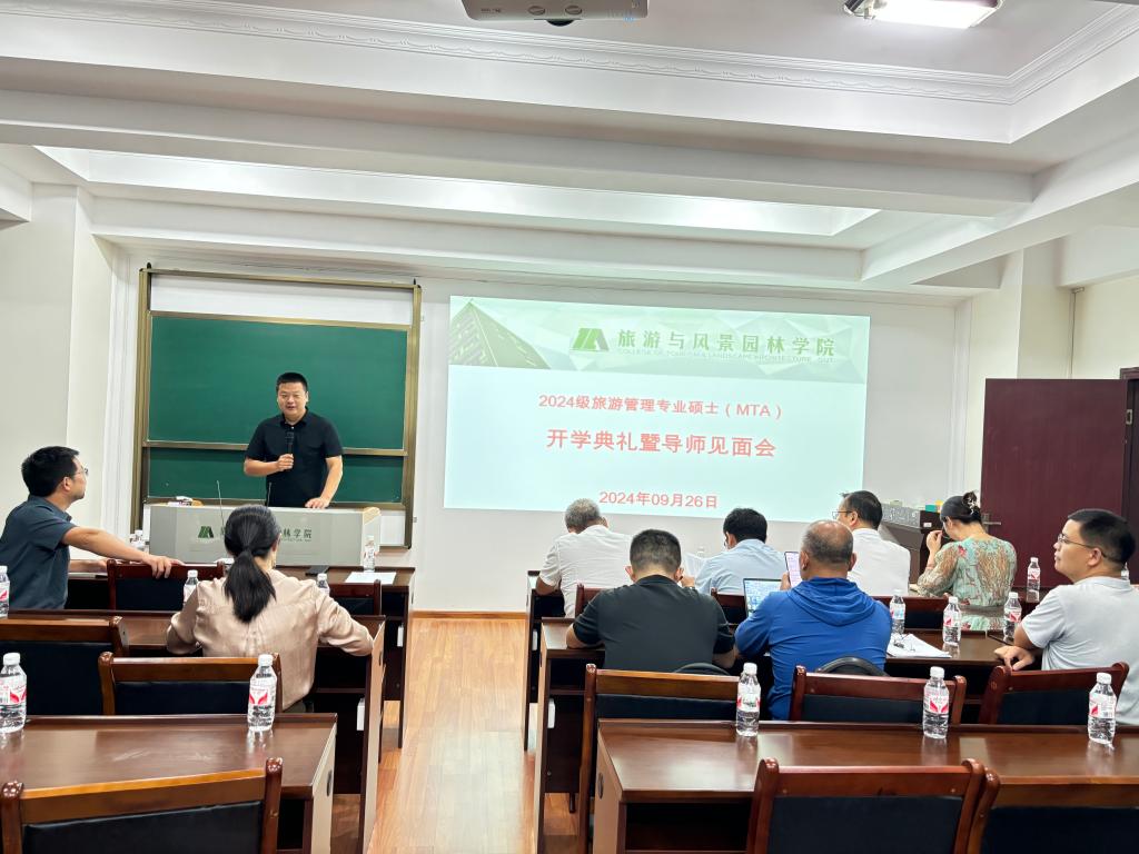 2024年9月26日晚,古天乐代言太阳集团网址在屏风校区的7409教室举行了2024级MTA开学典礼暨导师见面会。古天乐代言太阳集团网址党委书记王璐、院长郑文俊、副书记罗义松、副院长王荣及全体MTA硕士研究生导师和2024级MTA研究生参加了此次开学典礼,典礼由副院长邓春凤主持。