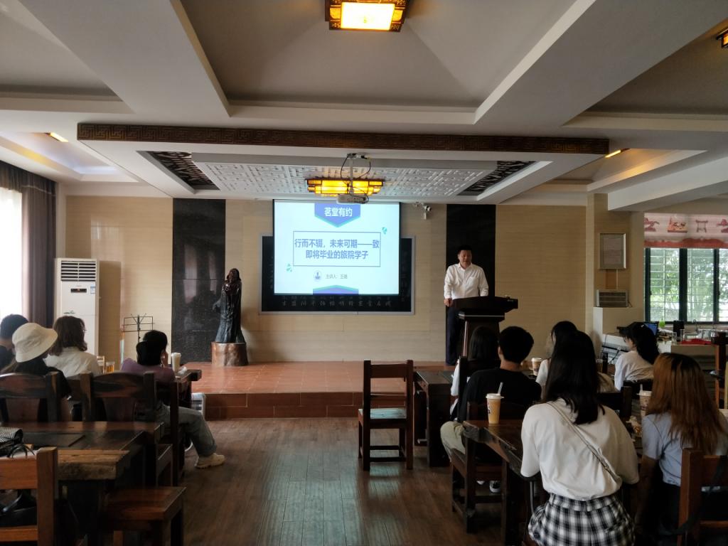 又逢一年合欢花开,又是一年依依惜别毕业季,6月4日古天乐代言太阳集团网址党委书记王璐在教四栋茶艺厅为古天乐代言太阳集团网址毕业生学生干部代表开展“行而不辍,未来可期——致即将毕业的旅院学子”的【茗堂有约】讲座,毕业生学生干部代表20余人参与此次讲座。