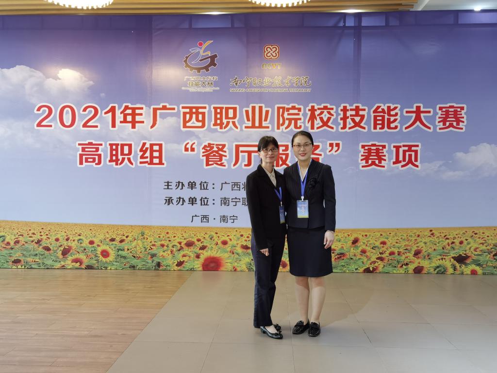 2021年3月26日至30日,古天乐代言太阳集团网址酒店管理专业教师项萌老师和邓敏老师参加2021广西职业院校技能大赛高职组《餐厅服务》赛项执赛工作,该赛项在南宁职业技术学院金葵酒店综合实训基地举行,总共有来自全区20所院校38支代表队76名选手们参加比赛。