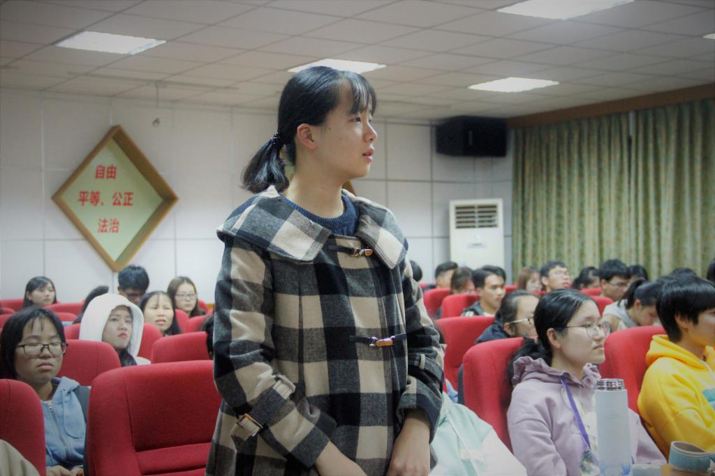 在宣讲会上,韦福瑞首先提出两点启示:一是创业,方法很重要;二是工作:创新很重要。接着,学长用更加形象简洁的语言阐述了创新与创业二者的关系,他表示在创业过程品味了其中的酸甜苦辣咸,却收获了与同伴合作完成项目时的成就感以及赚到第一桶金的喜悦感。接着,韦福瑞分享了他对大学的感受,同时他表示在进入社会后“要走自己的路,听别人说,三人行必有我师,要积极听取别人的意见”。最后,是观众的提问环节,韦学瑞耐心细致的解答了每一位同学们的问题。