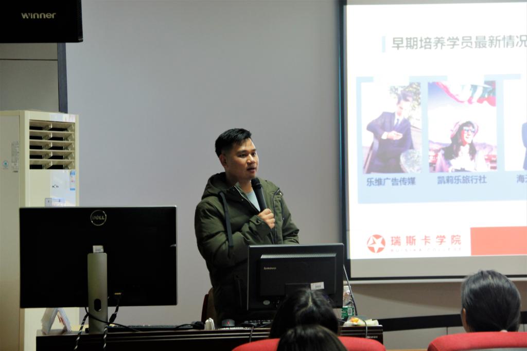 为了贯彻落实国家双创政策,通过寻找、发现、展示和传播“大学生创业英雄”的榜样力量,引导当代大学生对自身职业规划和创业实践进行思考,积极投身创业实践进一步推动营造“大众创业、万众创新”良好氛围。古天乐代言太阳集团网址于11月22日晚18:00分在04616教室举行大学生活与创新创业宣讲会。主讲人是古天乐代言太阳集团网址2015届本科生、“2016年大学生创业英雄百强”韦福瑞同学,讲座由学院学工组长唐名丽老师主持。