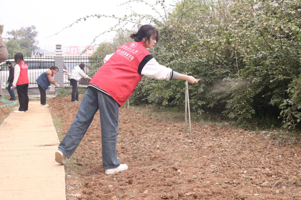 活动中,学院领导班子率先垂范,和大家一起忙碌着。参加植树的师生党员热情高涨,有的挥锹挖土、扶苗培土,有的播撒花种、提水浇灌,配合默契。大家劲往一处使、汗往一处流、干劲十足,呈现出一副热火朝天的劳动场景。