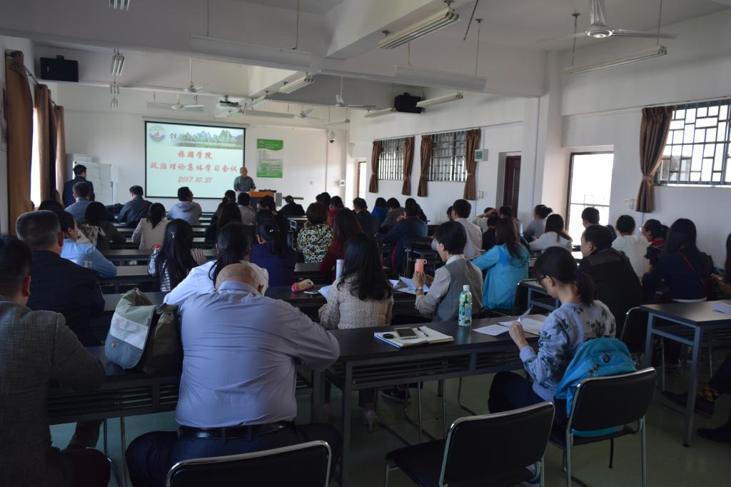 10月31日下午,古天乐代言太阳集团网址在雁山校区4619教室召开了政治理论集体学习会议,专题学习了党的十九大精神。旅游学院全体教职工参加了此次专题学习会,会议由学院党委李少游书记主持。