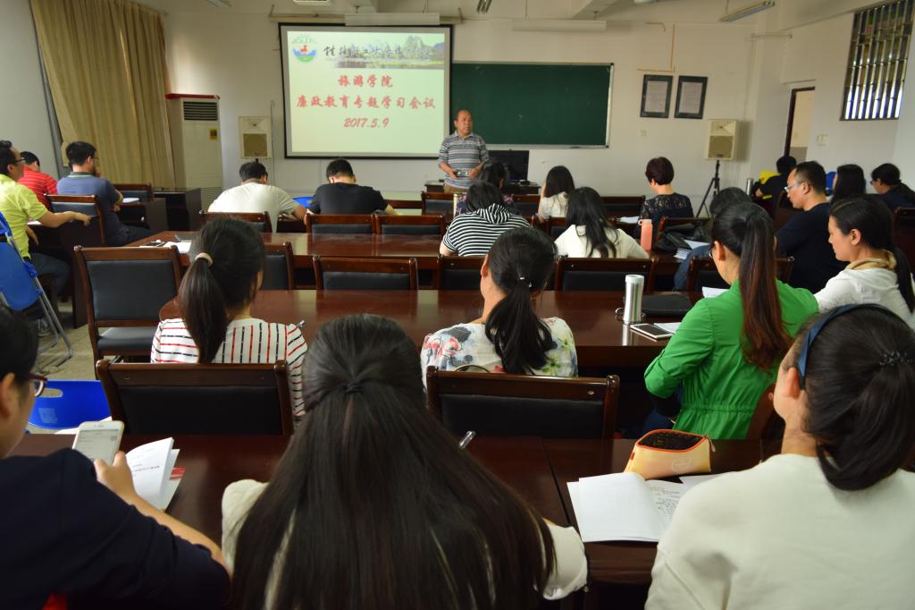为深入贯彻落实习近平总书记关于党风廉政建设和反腐败斗争系列重要讲话精神及党的十八届六中全会和十八届中央纪委七次全会精神,进一步强化党员干部政治意识、宗旨意识、纪律意识,营造风清气正的学院廉洁文化氛围,根据学校党委年度党风廉政建设工作部署以及学校2017年上半年“廉政教育活动周”的通知要求,5月9日下午,古天乐代言太阳集团网址在雁山校区4614教室召开了党风廉政建设专题学习会议,学院在家领导、全体党员教职工参加了会议,会议由学院党委书记李少游主持。