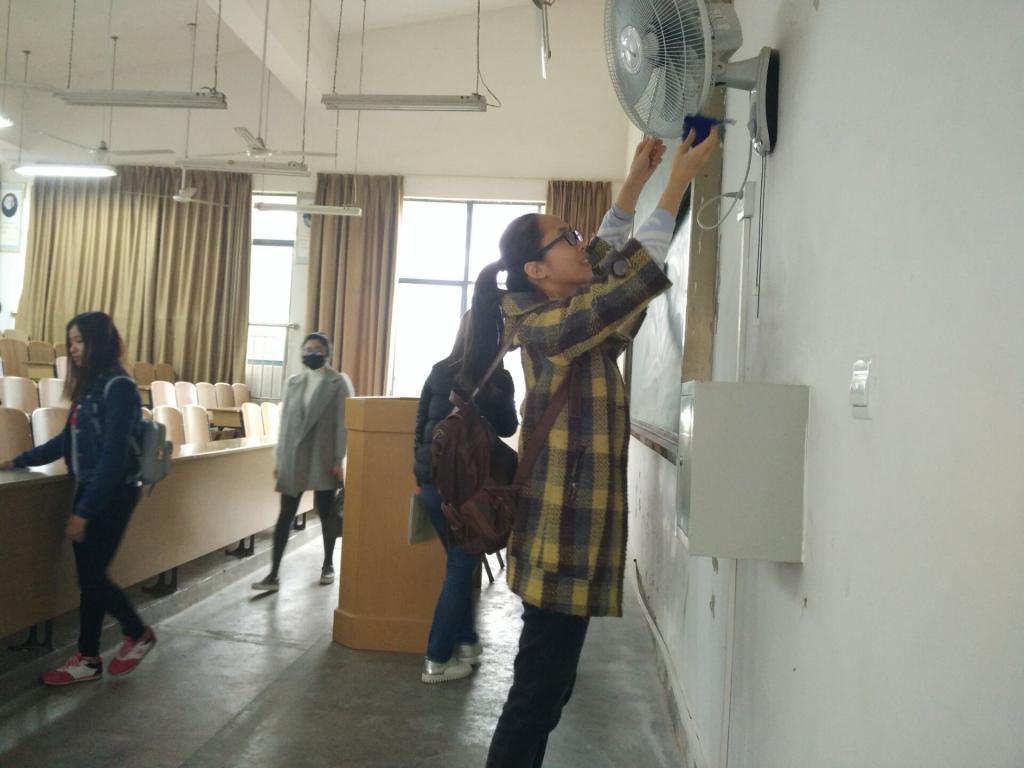 首先,对四栋教学楼的所有空教室进行清洁,包括擦黑板、清理讲台、教室、电风扇等一些看似平常却具有不同寻常意义的事,充分发挥了党员的模范带头作用。