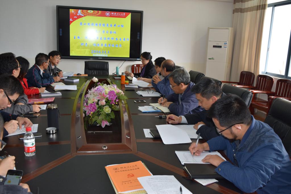 11月1日下午,在雁山校区04509会议室,学院召开了党委中心组(扩大)学习会议,本次会议的主题是传承红军长征精神,各自履行职责,确保年底考核优异。学院全体党委委员、全体党支部书记、办公室、教研室主任、副主任、实验室主任、副主任参加了会议,会议由学院党委书记李少游主持。
