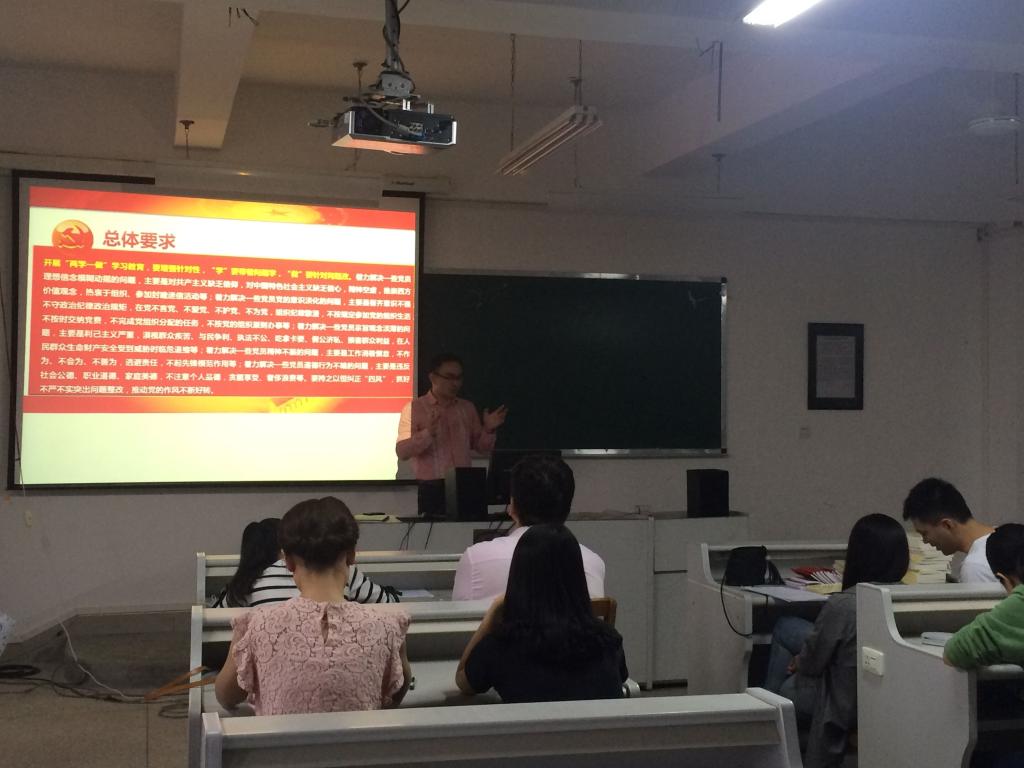 5月24日下午,在雁山校区04518教室举办了旅游学院本科五支部“两学一做”学习教育专题党课,党课由支部书记唐晨铭老师主讲,本科第五支部全体党员参加了党课学习。