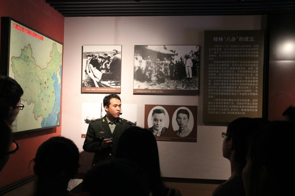 当日,阴雨连绵,让这座古朴典雅的纪念馆沉浸在庄重、肃穆的氛围中。八路军桂林办事处建于1938年,曾为周恩来、董必武等中共领导人的住址。纪念馆陈列了一系列详实的文物、图片与资料,全面生动地再现了老一辈革命先烈们大力宣传中国共产党的抗日主张,动员、团结各阶层人民共同抗日的英雄事迹,以及为党中央和抗日前线收集、传递各种情报及领导桂林抗日文化救亡运动等光辉史迹。