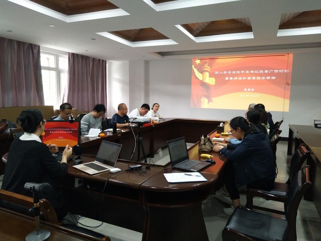 会上,学院党委副书记、纪委书记罗义淞与学院副院长黄燕玲领学。其中,罗义淞同志以“深入学习党史,牢记初心使命”为主题,从为什么学习中共党史、把握四史逻辑关系、中共党史的根本经验与规律三方面进行了讲解,其中“中共是世界史上最牛的创业团队”、“中共学是最成功的组织学、管理学、成功学”的内容,给参与学习的党员们留下深刻印象。黄燕玲同志则根据习近平总书记在广西考察时指出的“乡村振兴”“产业”“旅游”三大关键点,结合学院相关研究成果,提出强化政策指导,出台一揽子乡村旅游提振政策;链接文旅产业,打造一系列文旅创新创意项目;运用新信息技术,构建一体化新媒体网络平台等措施,为未来广西乡村旅游发展建言献策。