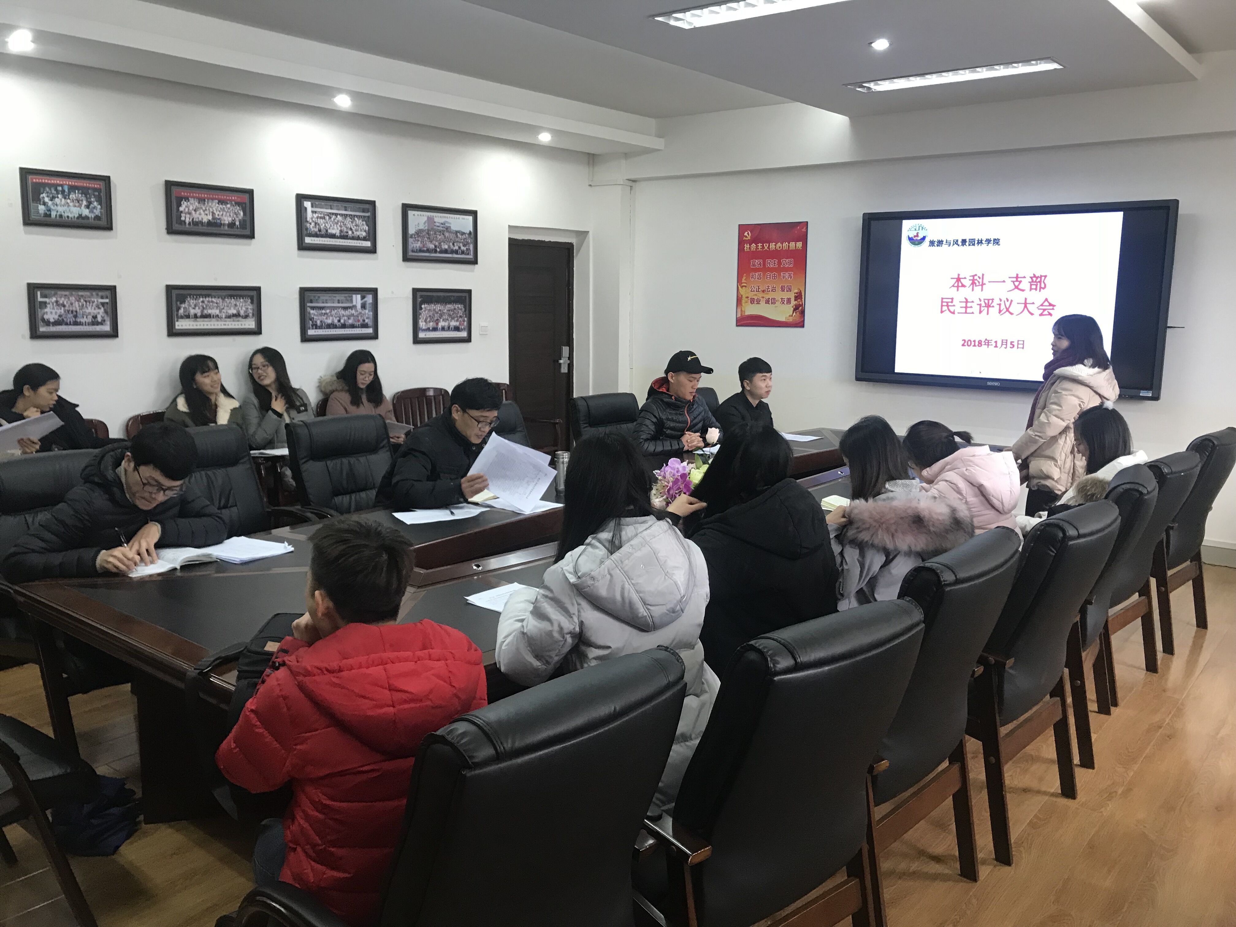 为认真学习贯彻习近平总书记系列重要讲话精神以及党的十九大精神,深入推进“两学一做”学习教育,根据学校的统一部署,旅游学院本科一支部于2018年1月5日在04509召开了2017年度民主评议党员大会,支部全体党员参加了此次会议。