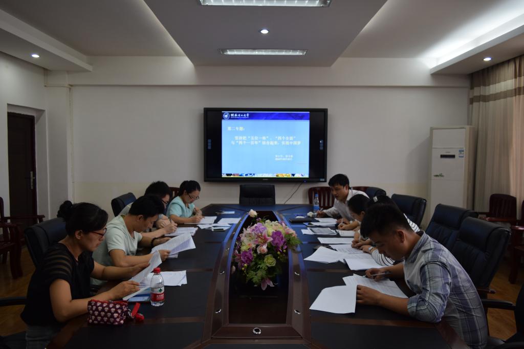 在第二专题的讨论会上,支部宣传委员黄小华老师带领大家一起再次学习了“五位一体”、“四个全面” 与“两个一百年”的相关知识,支部党员教师结合当前实际情况分别发表了自己的观点和看法。