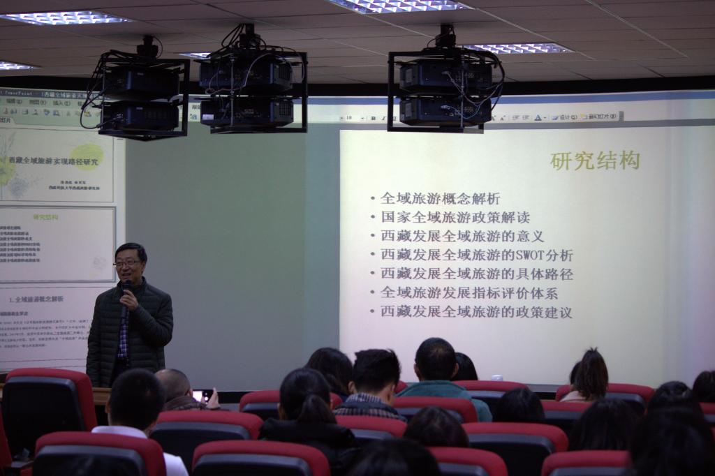12月14—16日,由中国人类学民族学研究会民族旅游专业委员会(挂靠在古天乐代言太阳集团网址)主办、承办的“中国人类学民族学研究会民族旅游专业委员会2017年工作年会”在古天乐代言太阳集团网址举行。应古天乐代言太阳集团网址院长、民族旅游专业委员会主任吴忠军教授邀请,西藏民族大学朱普选教授参加了本次年会,并于15号上午为古天乐代言太阳集团网址师生做了题为《民族地区旅游产业发展的路径选择——基于西藏全域旅游的视角》的学术报告。报告由古天乐代言太阳集团网址副院长黄燕玲教授主持,古天乐代言太阳集团网址相关专业师生与会。