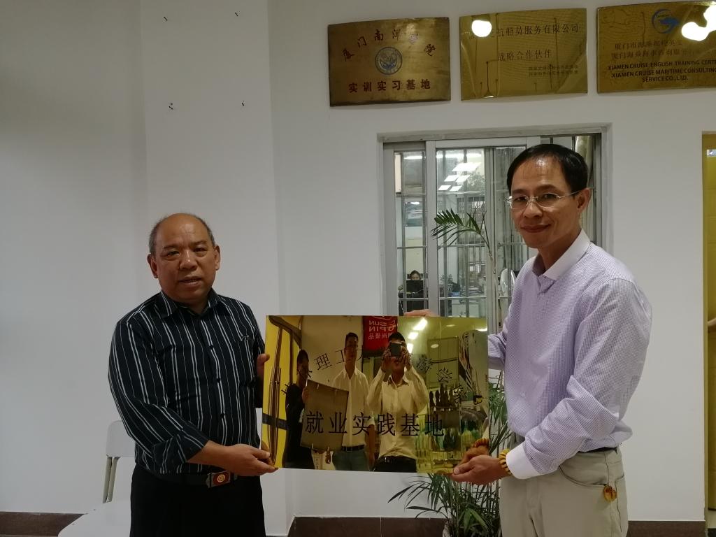 厦门海乘海事咨询服务有限公司与旅游学院合作多年,近两年合作越发密切,学生满意度日益提高,为加深双方合作关系,让更多的学生实现自己的邮轮就业梦想,李少游书记到公司开展就业洽谈。黄总首先介绍了公司的基本概况以及我校学生在邮轮就业的基本情况,之后李少游书记表达了对公司发展的赞赏。然后,双方进行了就业实践基地的挂牌仪式。