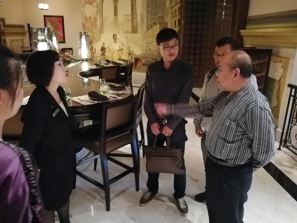 最后,Q吧总监邓小姐陪同李少游书记一行参观了酒店Q吧并介绍了Q吧的基本运行情况以及该部门实习学生情况。