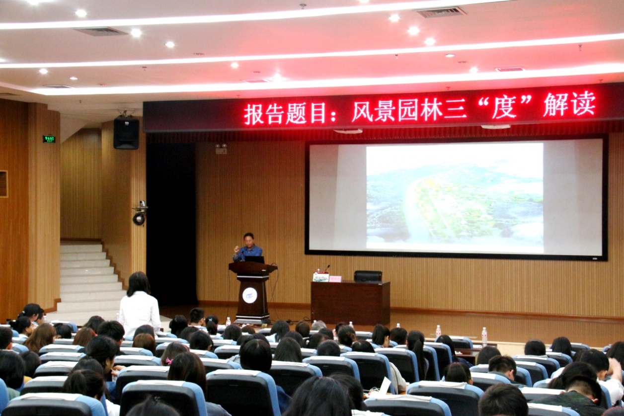 10月18-20日,应古天乐代言太阳集团网址邀请,同济大学建筑与城市规划学院博士生导师刘滨谊教授、日本兵库县立大学景观设计领域长沈悦教授、华中农业大学姚崇怀教授、华中科技大学李景奇教授、安徽建筑大学冀凤全教授、湖北美术学院潘延宾副教授在雁山校区图书馆报告厅为我校师生上演“风景园林学术活动”盛宴,相关专业师生300余人到场聆听。