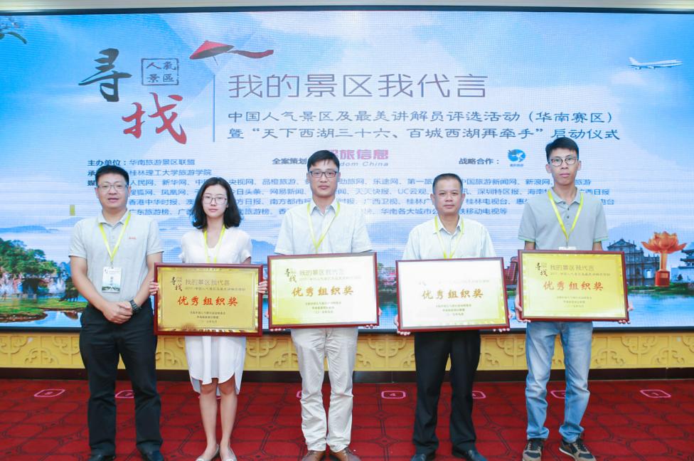 9月19-20日,由华南旅游景区联盟主办,桂林理工大学旅游学院承办的我的景区我代言-寻找中国人气景区及最美讲解员评选活动(华南赛区)在我校成功举办。海南旅游协会秘书长刘金林、广西旅游协会副秘书长覃妮娜、浙江工商大学旅游与城乡规划学院院长易开刚,桂林理工大学旅游学院院长吴忠军、杭州智旅信息董事长申帆等嘉宾出席颁奖典礼。