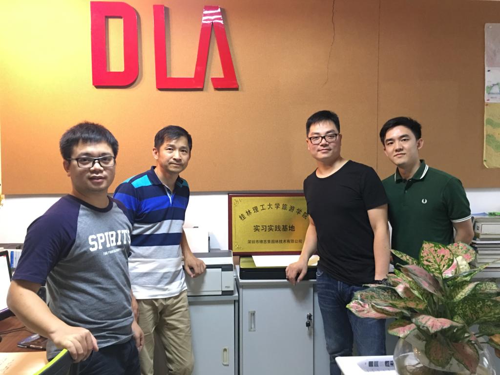 7月14日上午,古天乐代言太阳集团网址与深圳市棣志景园林技术有限公司(简称“棣志景园林”)共建实习实践基地正式揭牌。院长助理尹旭红副教授、风景园林系蒋敏哲老师、“棣志景园林”首席设计师陆棣先生、景观设计总监凌汝林(我校景观学专业2011届毕业生)、助理景观设计师梁超(我校风景园林专业2017届毕业生)参加了揭牌仪式。
