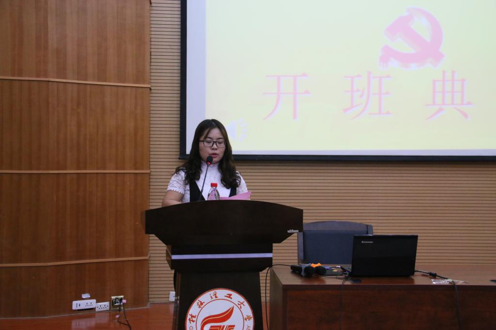 2017年5月20日上午10:00,桂林理工大学第十三期学生预备党员培训班(雁山二班)开班典礼在萃华楼报告厅举行。出席本次培训班开班典礼的领导和老师分别是旅游学院党校校长、旅游学院党委书记李少游老师、人文社会科学学院教务员陈琳老师、理学院教务员梁译匀老师、外国语学院教务员农珑老师、马克思主义学院教务员焦艳老师。本次开班典礼由旅游学院教务员张露萍老师主持。