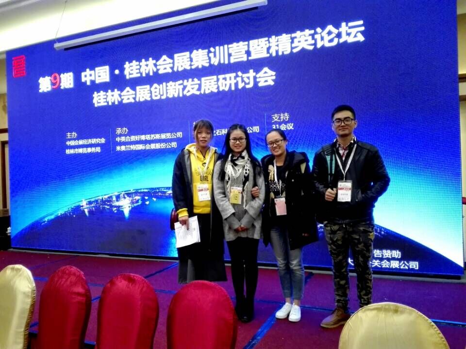 今年的中国会展集训营在桂林召开,在贺剑武、王艳老师的组织下,古天乐代言太阳集团网址2014级的刘春红、谈天然、罗阳杨和曾华等四名同学成功入选为“青蓝计划”学徒,并与带队老师一起参加了11月26-27日的“第九期中国(桂林)会展集训营暨桂林会展研讨会”,与企业届导师成功结对,开始了为期一年的会展专业学习。
