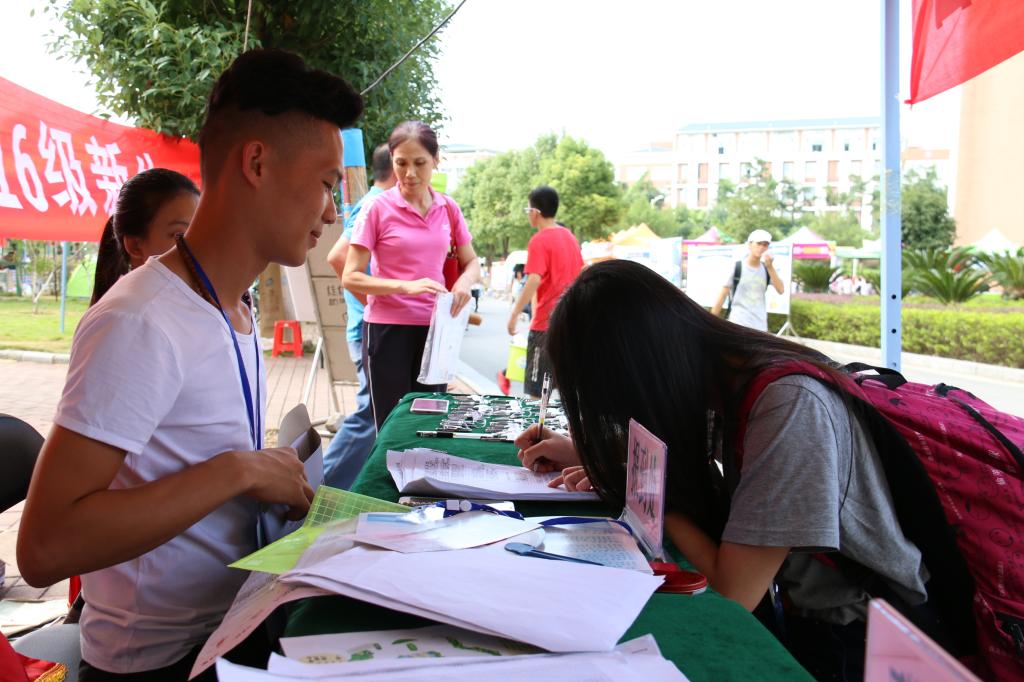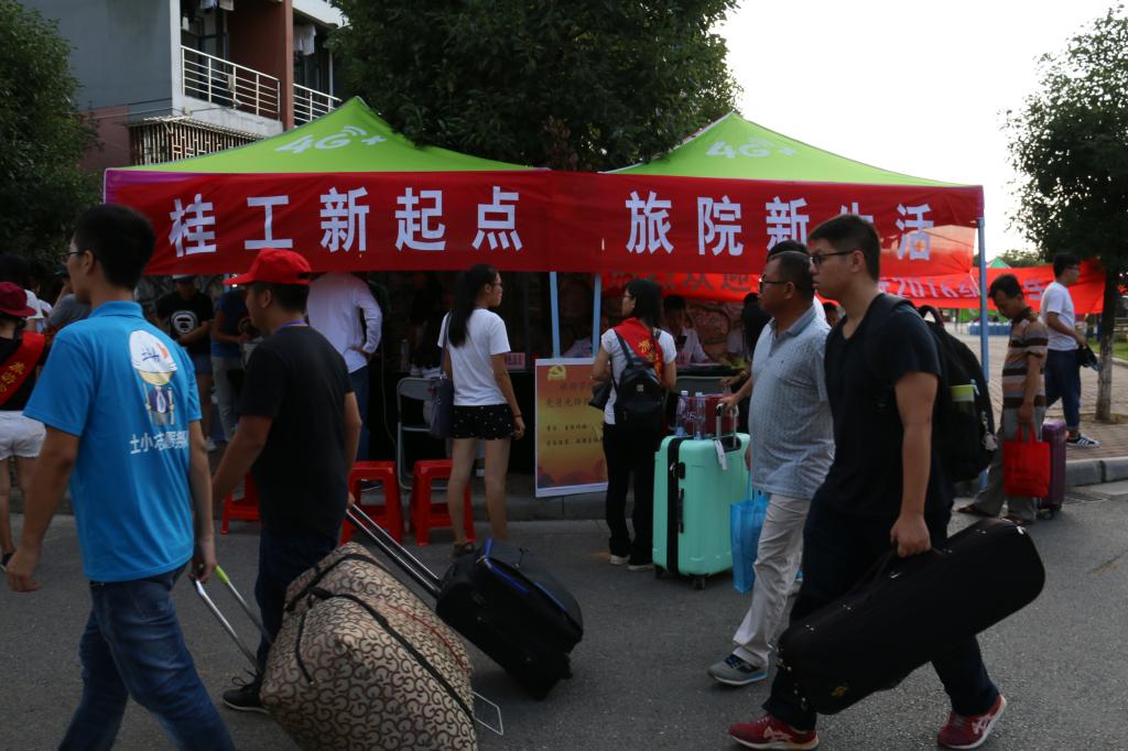 古天乐代言太阳集团网址领导高度重视迎新工作,提早进行了迎新布置和动员,制定了详细的迎新计划。并要求工作人员以高度的责任心,积极的工作态度,认真细致地做好各项工作。今年古天乐代言太阳集团网址在1号组团和2号组团都设有迎新接待点,整个迎新流程按照事先所布置的顺利进行。学长组成员、学生会工作人员和迎新志愿者配合默契,每位参与迎新的工作人员都精神饱满、工作积极、耐心细致,希望把桂工学子最好的一面展现给16级新生和家长。