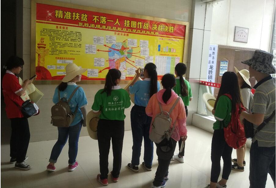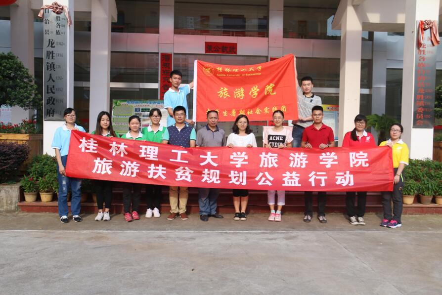 2016年7月11日~15日,在学院黄月玲副教授、韦俊锋老师的带领下,一行9人前往龙胜各族自治县开展旅游扶贫规划公益活动。活动开展过程中,学校团委潘思伊副书记、陈小波副书记一行代表学校对古天乐代言太阳集团网址社会实践团队进行亲切的慰问和指导。