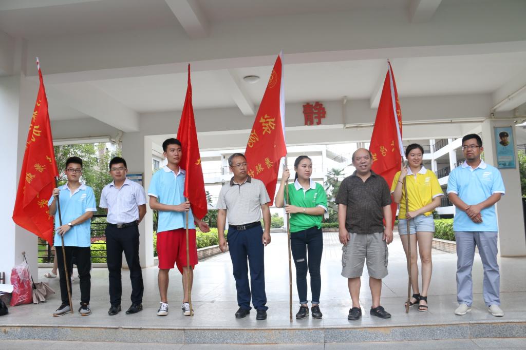 启动仪式分为五个议程。首先是由学院领导吴忠军发表动员讲话,吴院长向大家介绍了旅游扶贫三下乡的目的和意义,概括了暑期社会实践的内容,同时对在场的学生们给予信心及厚望,希望同学们能够通过这次实践活动锻炼自己,促进自身成长成才。接下来是团员代表孙文强发言,激昂慷慨的陈词鼓舞了大家的士气。紧接着由院领导李少游书记发表讲话,他强调了暑期社会实践过程中的安全事宜,对艰苦的环境和炎热的天气可能带来的问题提出了解决措施,给在场的同学们打了一枚预防针,同时也希望大家能过养成吃苦耐劳的习惯和培养坚定的意志力。第四个议程是校团委副书记陈小波老师发言讲话,他先和大家解释了三下乡的重要性,同时预祝大家在这次旅游扶贫暑期社会实践中取得圆满成功。启动仪式到了最后一个议程,由领导为各团队授旗,当印有旅游学院四个大字的鲜艳红旗交接到各个代表手中的时候,旅游学院旅游扶贫暑期实践活动启动仪式也落下了圆满的帷幕。