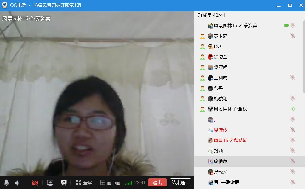 为保障2020届毕业生毕业工作顺利进行,根据学院部署,风景园林专业于4月5日下午2:30分,通过QQ群视频电话和屏幕分享方式开展了2016级风景园林本科毕业设计(论文)线上开题报告答辩工作。