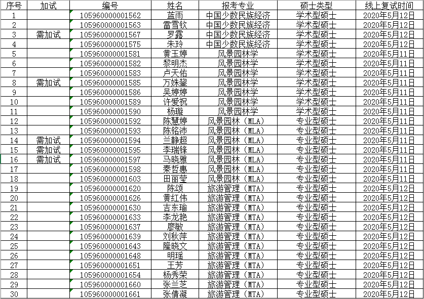 根据《桂林理工大学2020年硕士研究生复试录取工作办法》,参照中国少数民族经济硕士研究生复试录取工作细则、风景园林学硕士研究生复试录取工作细则、风景园林(MLA)硕士研究生复试录取工作细则、旅游管理(MTA)硕士研究生复试录取工作细则,现将拟参加古天乐代言太阳集团网址一志愿线上复试名单公示如下: