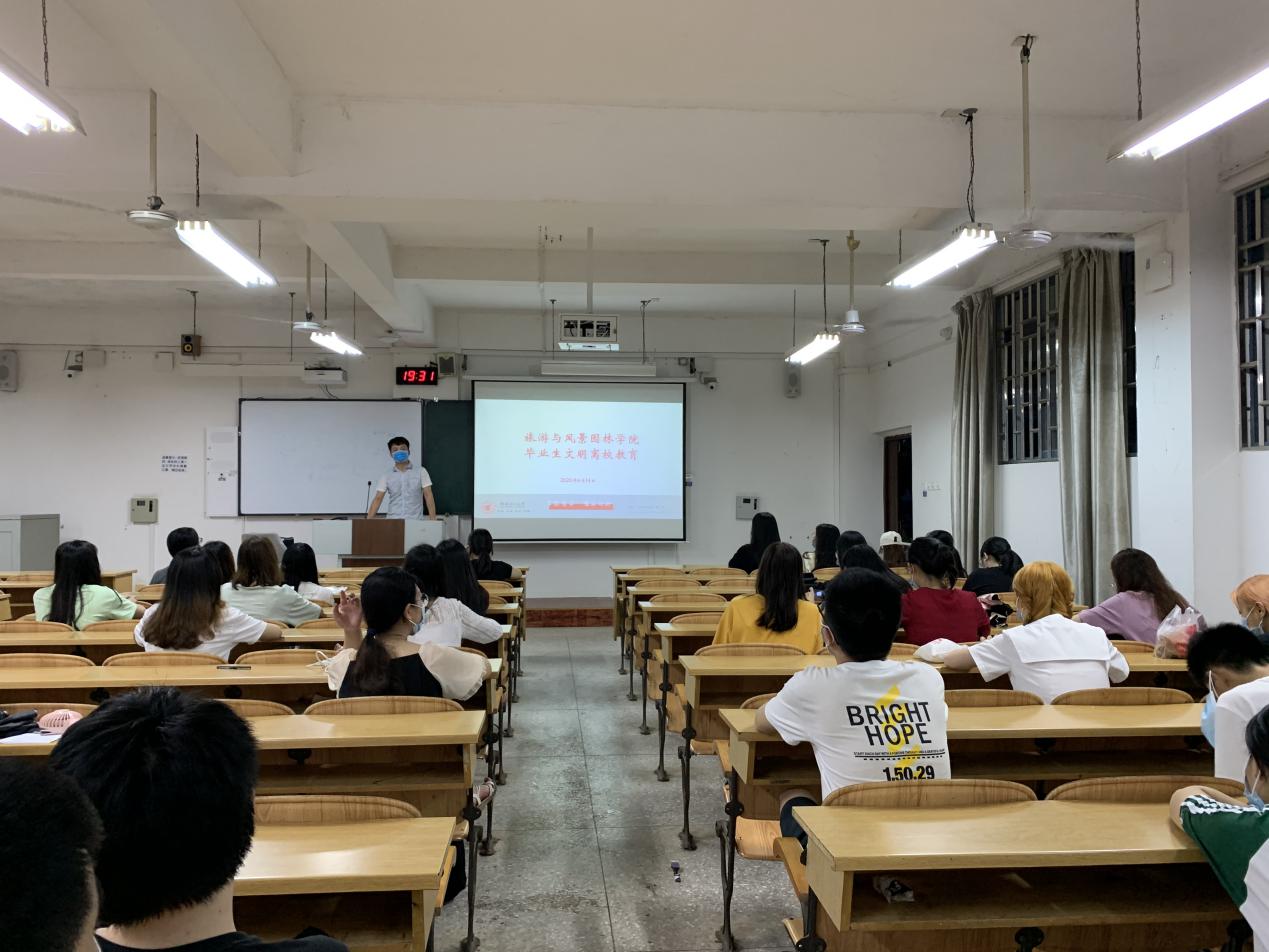 在主题教育活动中,辅导员就毕业离校的相关工作及系列活动做了说明,如毕业生党员教育实践活动、行李托运暖心活动、毕业典礼暨学位授予仪式等,这系列活动洋溢着依依惜别的离别情,引导毕业生通过高雅文明、健康积极的方式感恩母校,感谢师长,珍惜同学情谊,毕业不散场,青春梦起航!