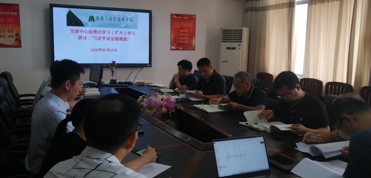 9月15日上午,学院在校区雁山04509会议室举行党委中心组(扩大)集中理论学习会,专题学习《习近平谈治国理政》第三卷。在家院领导、学院党委委员、各党支部书记及各教研室主任参加理论学习会。会议由学院党委书记王璐主持,吴忠军院长领学。