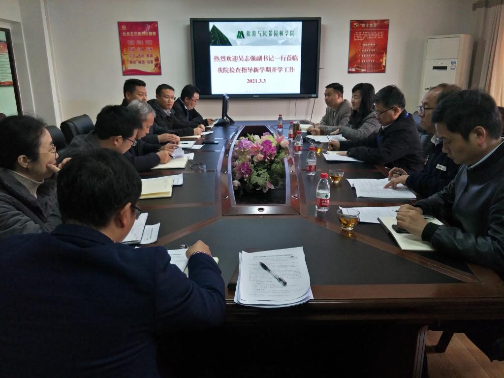 在认真听取汇报后,吴志强副书记对古天乐代言太阳集团网址新学期开学准备工作、“十三五”目标完成情况、“十四五”工作设想等工作予以了充分的肯定,根据学院目前发展建设状况以及春季学期开学准备情况等方面进行了指导并提出了三点要求。一是要贯彻落实学校召开的2021年工作会议精神,认真学习解校长在学校2021年工作会议上的报告内容;二是要根据学院实际情况,结合党建工作开展党史学习教育以及举办建党100周年的相关庆祝活动;三是要组织教师、带领学生利用旅游、风景园林的专业学科优势,做好学院“互联网+”的相关竞赛工作。