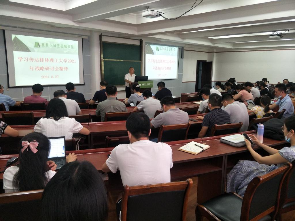8月27日下午,学院在屏风校区7407会议室召开全体教职工大会学习传达桂林理工大学2021年战略研讨会精神,学院全体教师参加了此次会议,大会由学院吴忠军院长主持。