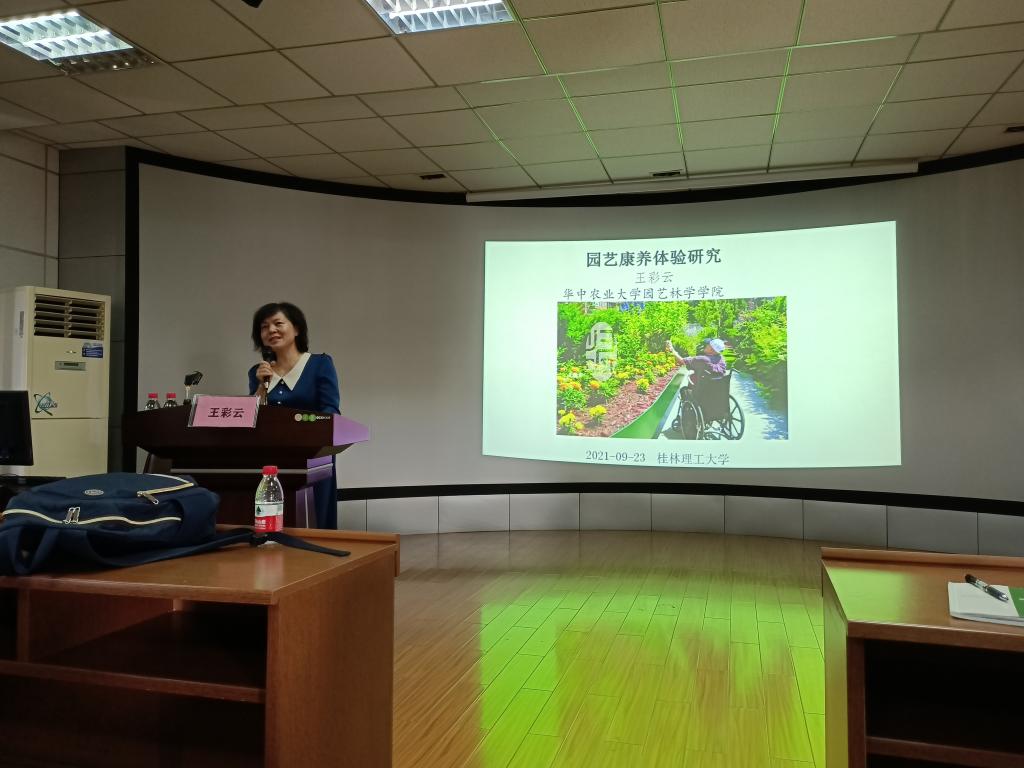 9月23日下午,中国花协花文化分会副会长、中国插花花艺协会副秘书长、华中农业大学博士生导师王彩云教授,受邀在雁山校区致远楼4616教室为古天乐代言太阳集团网址师生作专题讲座。学术报告会由学院副院长郑文俊教授主持,学院吴忠军院长、黄燕玲副院长、胡金龙院长助理、风景园林和园林与生态工程教研室教师及研究生100余人参加了讲座。