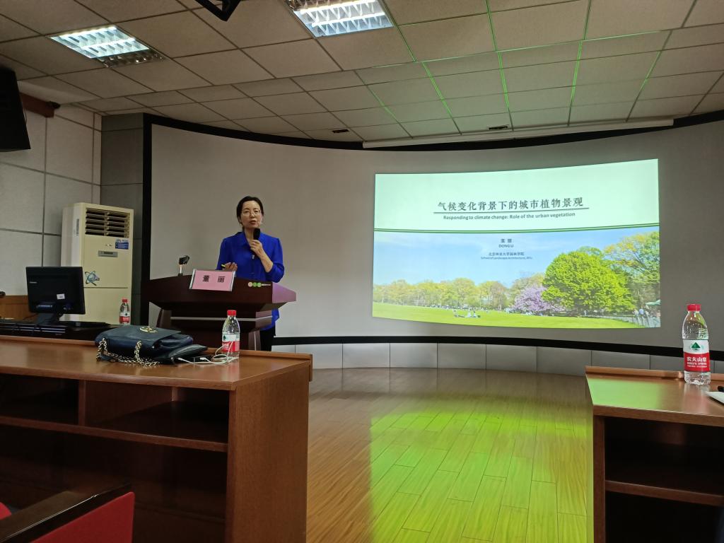董丽教授分别从全球气候变化与碳排放、风景园林与减排增汇、植物景观与碳汇等方面介绍了《气候变化背景下的城市植物景观》相关研究,分享了气候变化及“碳达峰、碳中和”国家战略目标的大背景下,植物景观如何更高效地发挥生态功能。