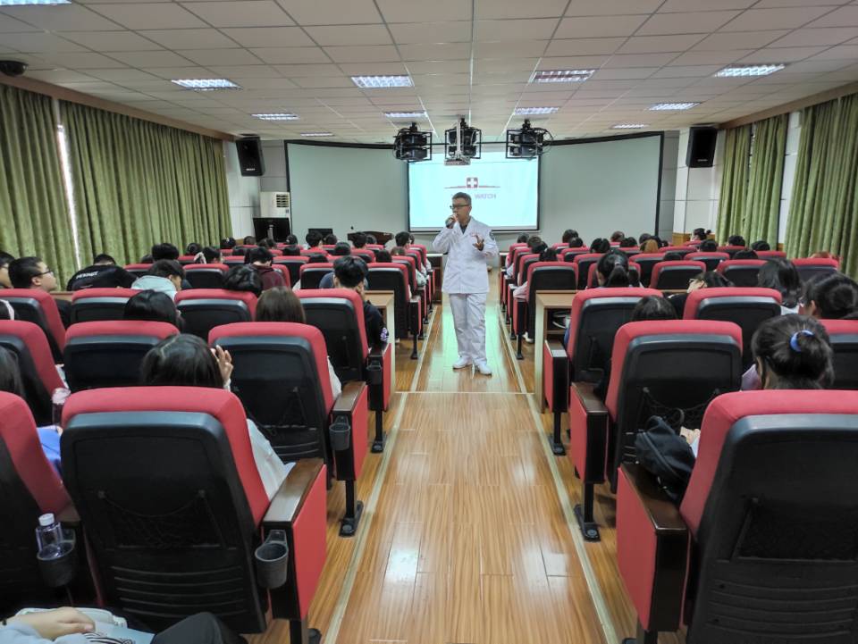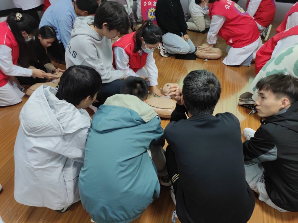 实践教学活动中,龚卫林老师讲解了掌握心肺复苏与对气管食管异物处理的重要性,详细介绍了心肺复苏的方法与关键点。孔燕老师演示了从发现有人倒地到完成心肺复苏的整个过程。介绍了三种在面临气管食管存在异物时的自救与救助方法,同时演示了当中的海姆立克急救法。参与讲座的同学亲身体验并学习了心脏按压与海姆立克急救法。
