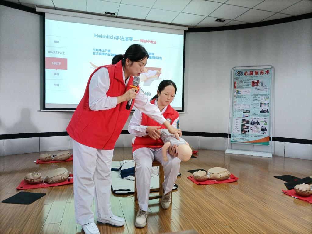 活动中何林炎老师先首先介绍了培养公众急救意识的原因及背景,让大家意识到学会自救与他救的必要性和重要性;接着从心肺复苏的判断、方法、具体情况展开分析,使同学们从中学会了几种心肺复苏的方法以及适用人群;随后,孔老师向同学们生动演示了清除婴儿口腔异物的流程及面临气管存在异物时的自救与他救方法;最后,孔老师积极带动同学们演练心肺复苏和人工呼吸。