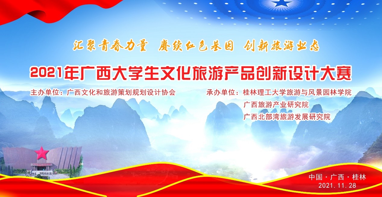 本次大赛以“汇聚青春力量,赓续红色基因,创新旅游业态”为主题,旨在搭建广西文化旅游规划设计人才教育和培养使用的交流平台。大赛共有全区15所大专院校选拔出的285支队伍,近2000师生参赛,在文化旅游线路策划、旅游文创产品创意设计、文化旅游营销创意策划(视频制作)三个项目中竞争角逐,经过大赛组委会聘请的区内外多名知名专家进行初评和复评,最终评选出入围决赛作品37组、三等奖作品86组。