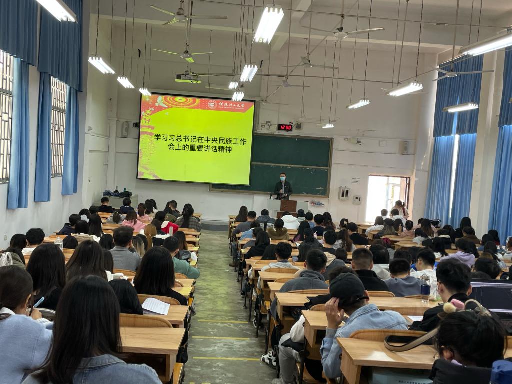 会上,罗义淞老师强调:这次中央民族工作会议,是在建党百年之际召开的一次十分重要的会议。习近平总书记出席并发表重要讲话,全面回顾了我们党民族工作百年光辉历程和历史成就,系统阐释了我们党关于加强和改进民族工作的重要思想,明确了当前和今后一个时期民族工作的战略目标。希望全体同学,能认真学习领会习近平总书记重要讲话精神,增强“四个意识”、坚定“四个自信”、做到“两个维护”,坚定信仰,各民族同学之间和谐共处,在思想上和行动上统一到中央决策部署上来。