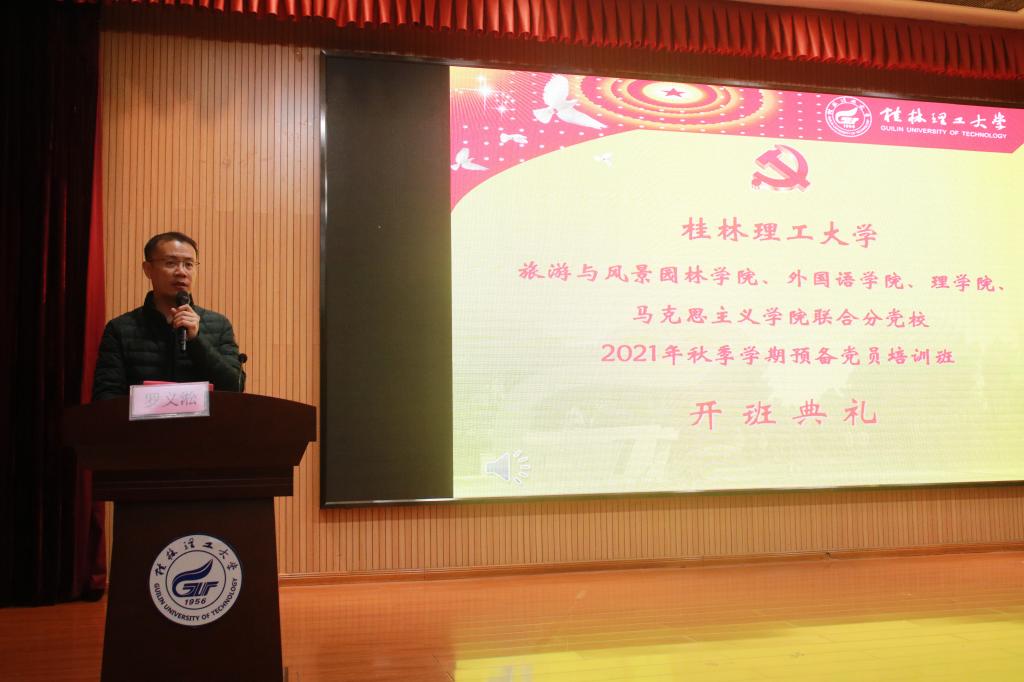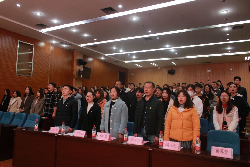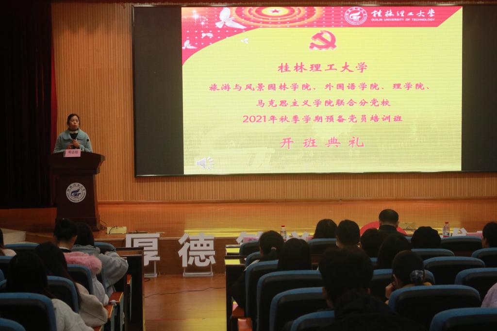 为深入学习贯彻习近平新时代中国特色社会主义思想,切实提高党员发展质量和预备党员党性修养,强化党员意识,加强党性锻炼,促使党员在学习、生活及社会实践中身体力行,率先垂范,进一步发挥党员模范带头作用。11月22日,由古天乐代言太阳集团网址牵头(古天乐代言太阳集团网址、外国语学院、马克思主义学院、理学院)联合分党校第二十二期预备党员培训班开班典礼在图书馆报告厅顺利举行。古天乐代言太阳集团网址党委副书记罗义淞、外国语学院党委副书记邓洁琼、各学院党建组织员以及全体参与培训的预备党员共同参加。