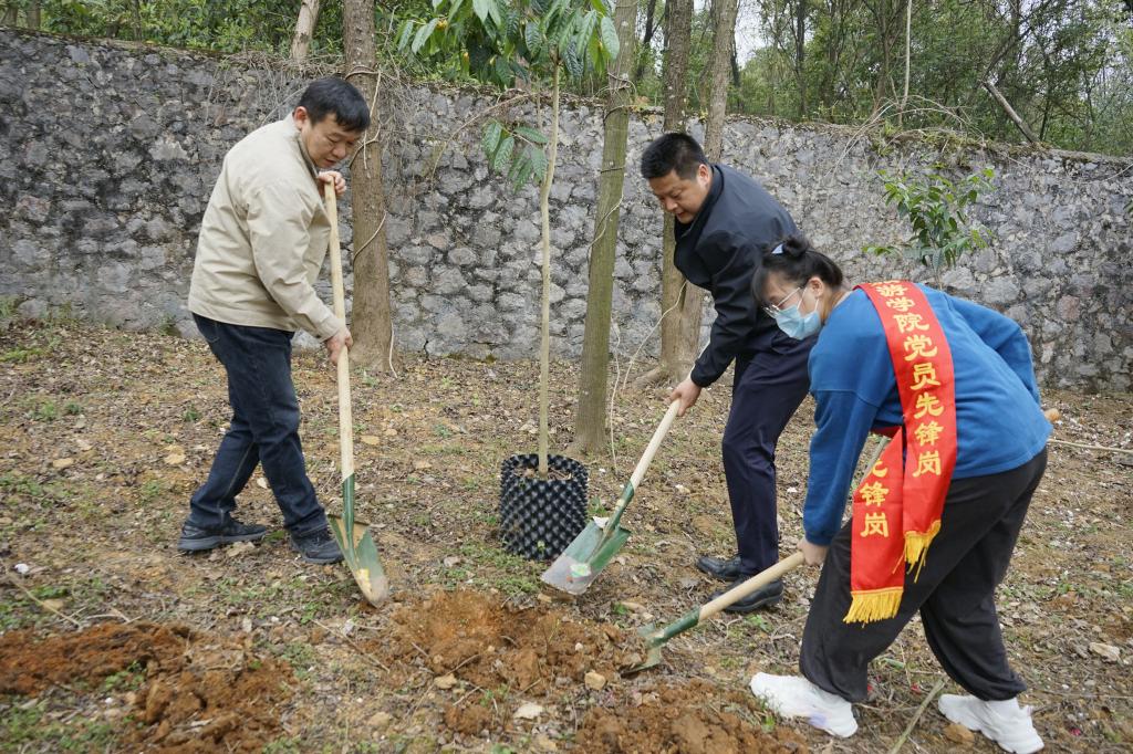 三月春暖花开季,植树正当时。为深入贯彻落实习近平生态文明思想,厚植绿水青山就是金山银山的绿色发展理念,共建绿色生态校园。3月11日,古天乐代言太阳集团网址组织师生党员在学校园林景观实验基地开展以“携手植新绿,喜迎二十大”为主题的义务植树活动,学校党委副书记齐俊斌与学院师生党员代表共同参加。