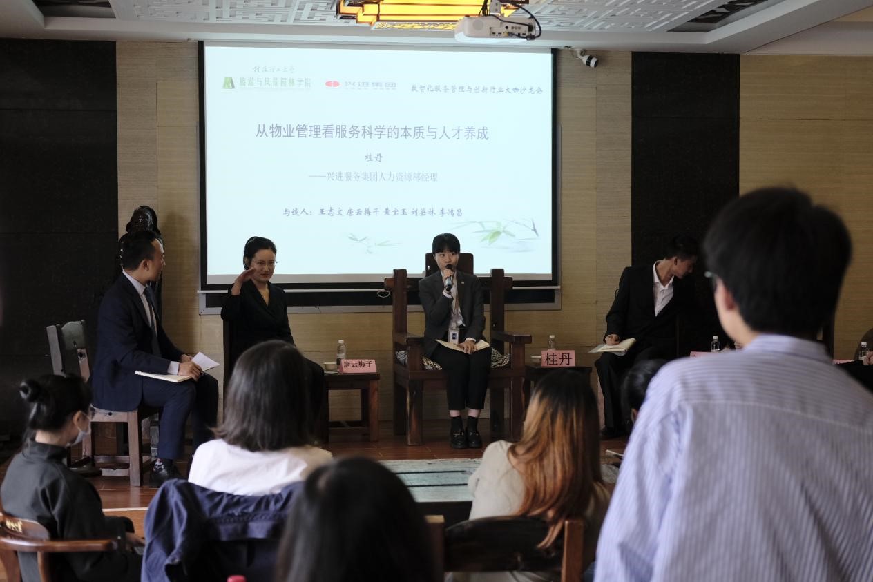 在沙龙上,桂丹女士介绍了兴进集团是如何做到桂林市最大的物业集团,并以“兴进集团的物业费为何是桂林之最”与在座的同学、老师进行讨论,指出物业要以业主需求入手,要针对不同客群提供针对性的服务,并且时刻关注客人需求的变化。与谈学生、老师向桂丹女士提出了物业与酒店的入门门槛相似,那么职业发展该如何规划?物业的薪资以及工作待遇如何等一系列问题。