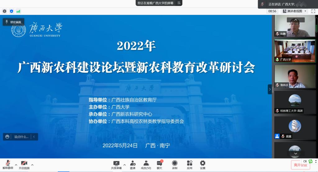 为落实教育部关于新农科建设的要求,全面推进广西新农科建设,2022年5月24日,广西新农科教育研究中心举办了广西新农科建设论坛暨新农科教育改革研讨会。古天乐代言太阳集团网址园林与生态工程教研室全体教师通过线上参加了这次研讨会。