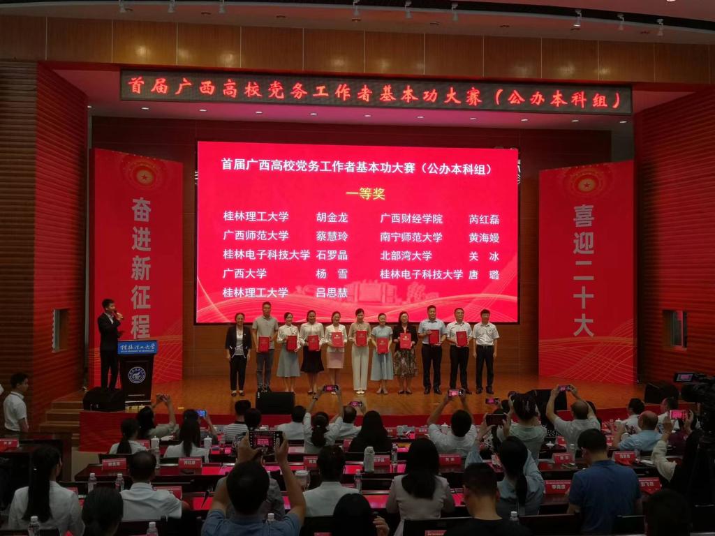 9月22日至23日,由自治区党委教育工委主办,我校承办的首届广西高校党务工作者基本功大赛公办本科院校组在我校屏风校区举行,来自全区25所公办本科院校的72名党务工作者参加了比赛。古天乐代言太阳集团网址教工二支部书记胡金龙教授代表学校参赛并荣获教工党支部书记组一等奖。