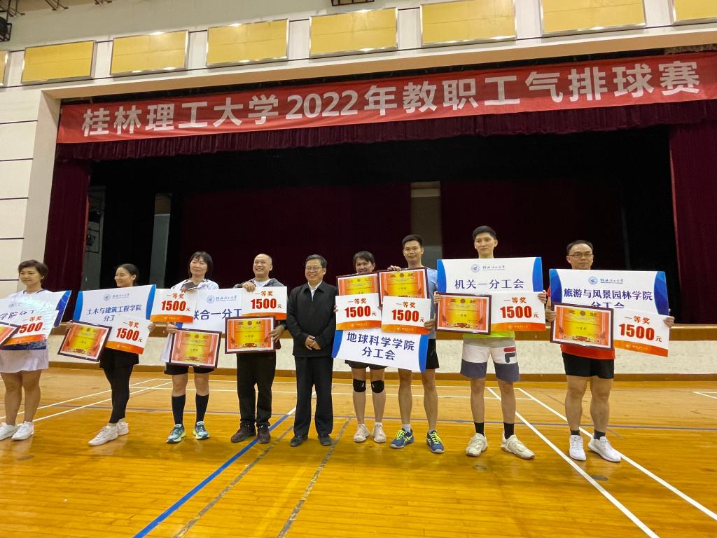 10月17日-11月7日,学院气排球队参加了我校举行的2022年教职工气排球比赛,队员们经过刻苦的训练、认真的准备、努力的付出、顽强的拼搏,凭借雄厚的实力与灵活的排阵变化,在20多支参赛队伍中脱颖而出,一路披荆斩棘,勇夺比赛一等奖。