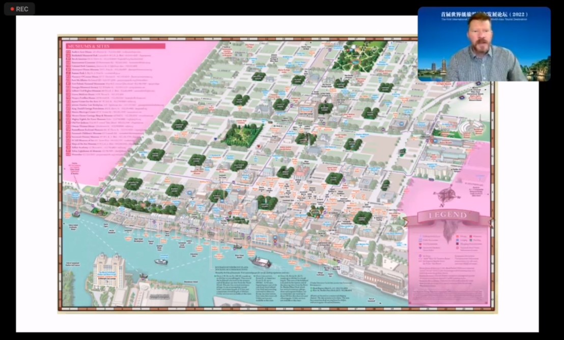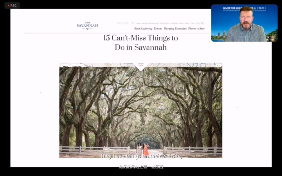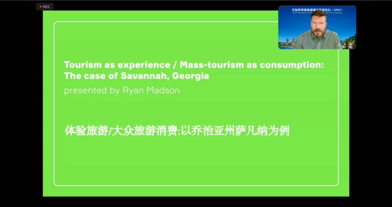 2022年11月20日,在桂林市委宣传部和桂林理工大学联合主办的“首届世界级旅游城市发展论坛”上,来自美国萨凡纳艺术设计学院(Savannah College of Art and Design)的瑞恩·麦德森(Ryan Madson)教授作为第一位出场的主讲嘉宾,给会议的参会人员带来了题为“体验旅游/大众旅游消费:以乔治亚州萨凡纳为例”的主题报告。