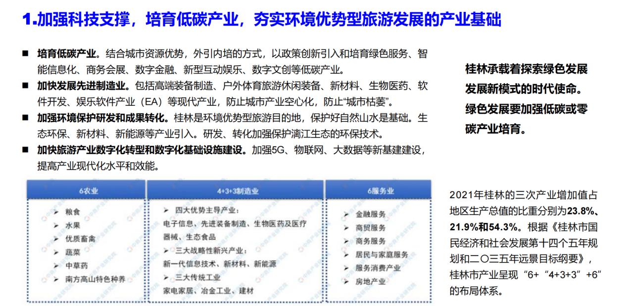 首先要加强科技支撑,加快发展先进制造业和培育第三产业,夯实战略基础。具体措施为培育低碳产业、发展先进制造业,加强环境保护的研发和成果转化、加快旅游产业数字化转型与基础设施建设,满足游客对于科技的需要等。