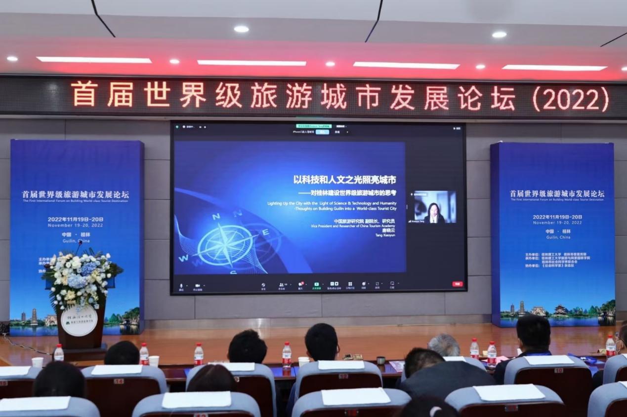 2022年11月20日,在桂林市委宣传部和桂林理工大学联合主办的“首届世界级旅游城市发展论坛”上,中国旅游研究院副院长唐晓云研究员以“以科技和人文之光照亮城市——对桂林建设世界级旅游城市的思考”为题做主旨演讲。