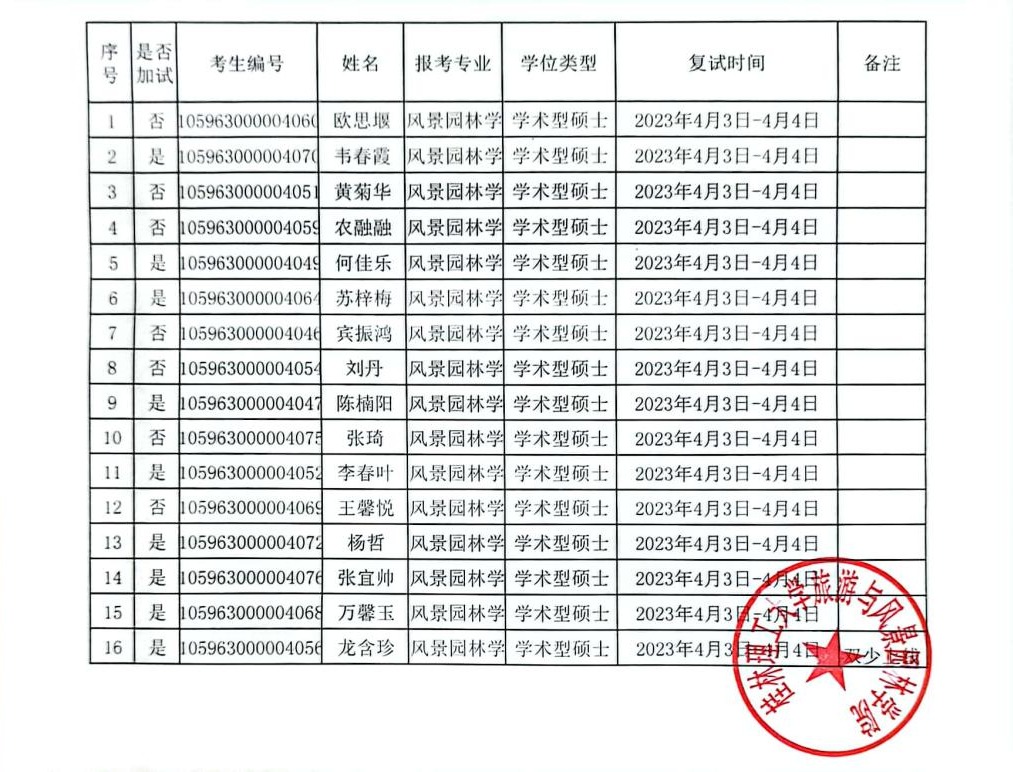 根据《桂林理工大学2023年硕士研究生复试录取工作办法》,参照风景园林学硕士研究生复试录取工作细则、风景园林(MLA)硕士研究生复试录取工作细则、旅游管理(MTA)硕士研究生复试录取工作细则,现将拟参加古天乐代言太阳集团网址一志愿线上复试名单公示如下: