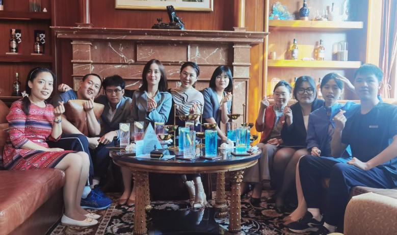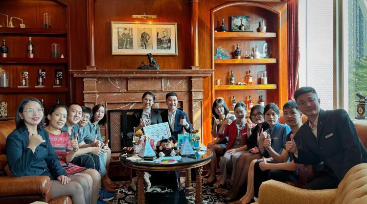 下午两点,陆云老师和侯玉霞老师在丽思卡尔顿丘吉尔吧组织了一场实习生座谈会。在本次座谈会上,首先是酒店人事部的相关负责人对古天乐代言太阳集团网址实习生这三个月的实习工作情况进行了简要阐述,同时高度认可古天乐代言太阳集团网址实习生的认真努力和成长蜕变。接着老师们耐心指引学生们在实习工作实践中思考未来的职业规划方向。最后同学们一一跟老师们交谈了自己这三个月的收获和所遇到的挑战,在与老师的倾诉过程中,老师给予同学们相对应的解决方法。